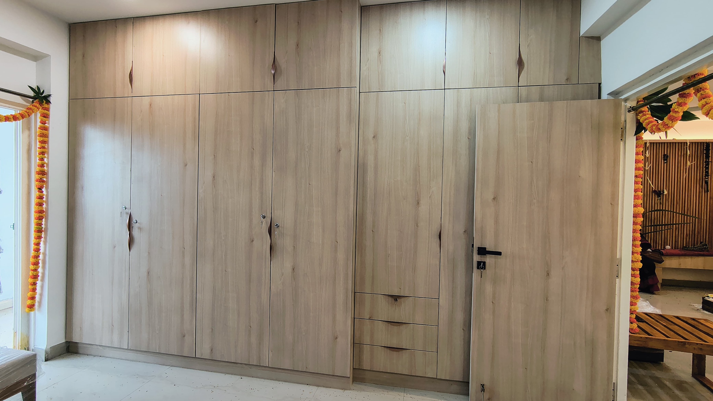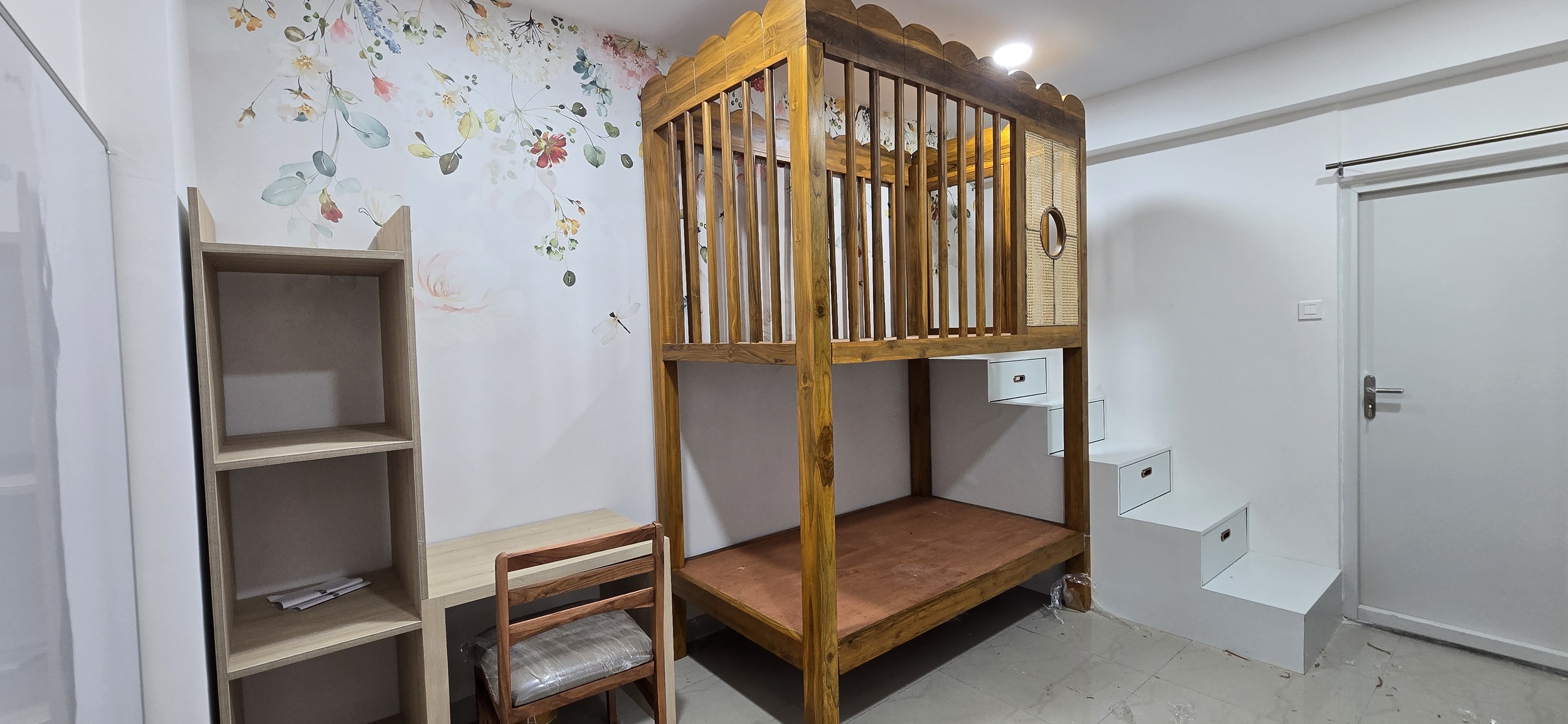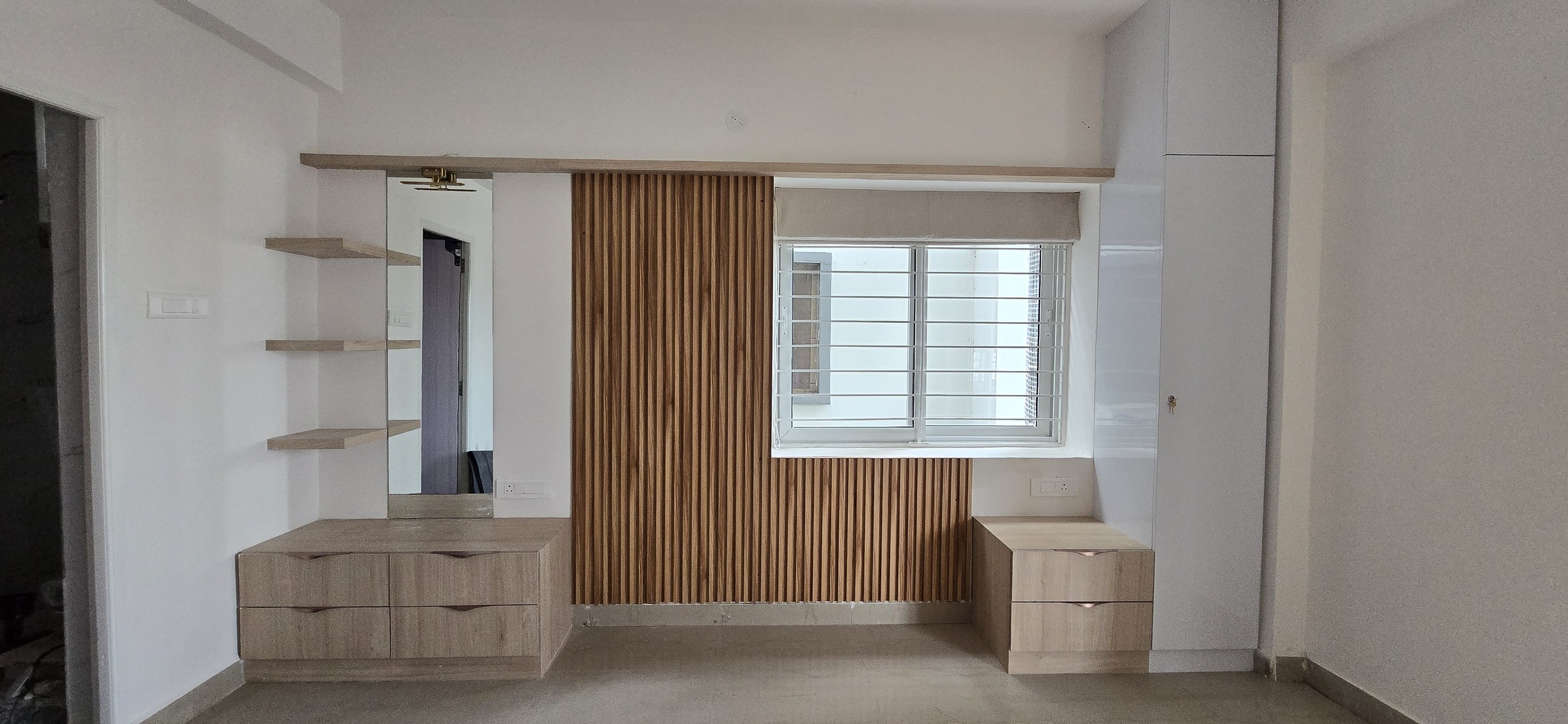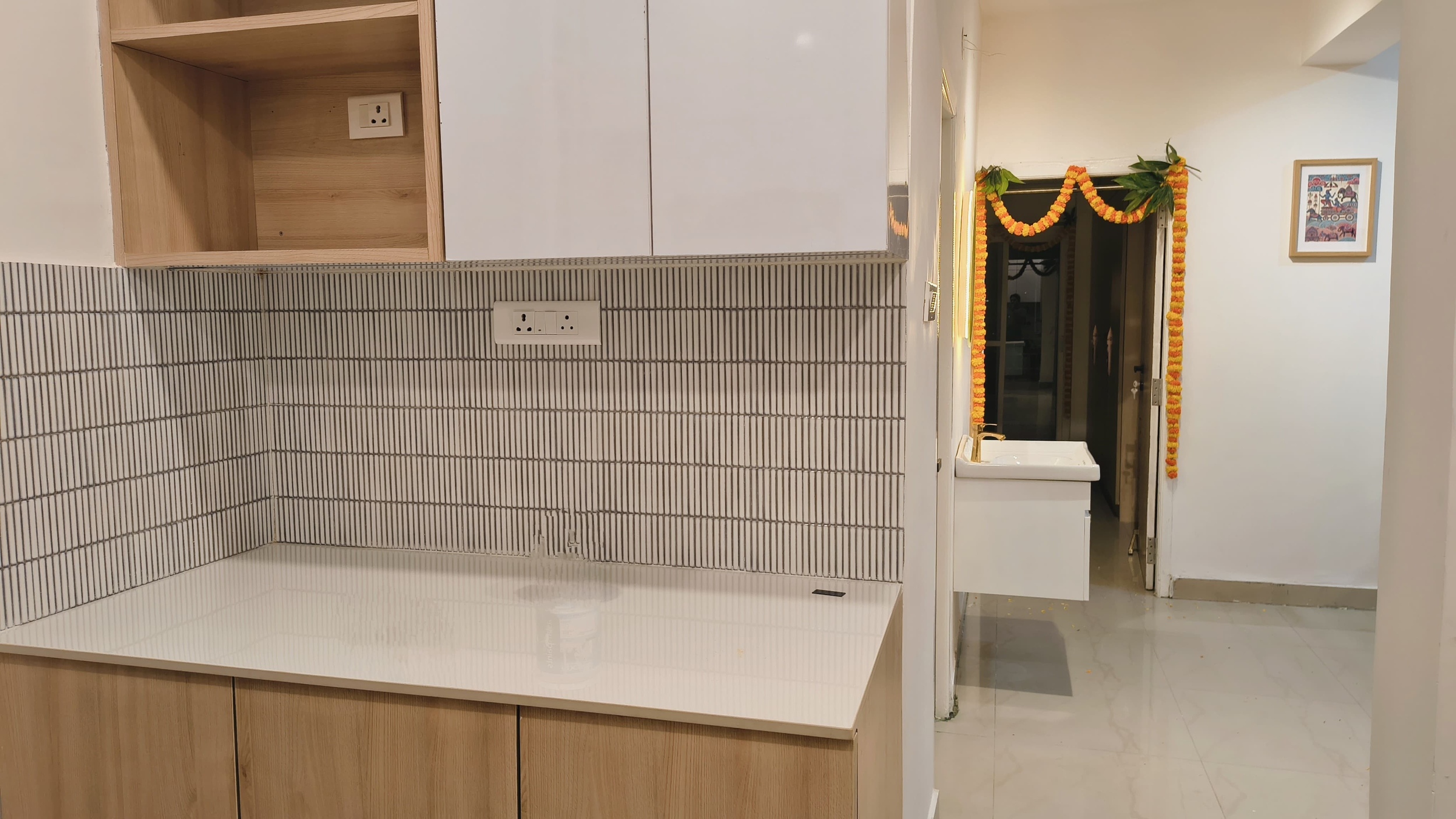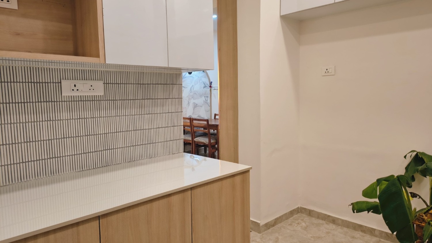 This project was a complete interior renovation of a 2BHK apartment in Hyderabad, transforming it into a peaceful, biophilic-themed sanctuary. The goal was to create a home that helps residents feel connected to nature, promoting a sense of calm and well-being.